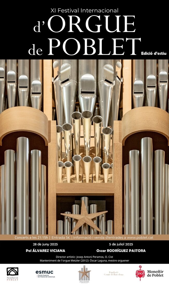 Aquest any 2025, el Festival Internacional d’Orgue de Poblet s’amplia i ofereix una edició d’estiu a més dels habituals concerts a la tardor. L’objectiu és donar l’oportunitat de participar en el Festival a organistes que estan començant una carrera prometedora. Al mateix temps, volem oferir al públic l’oportunitat de gaudir més sovint del so de l’orgue Metzler de Poblet, únic a la península ibèrica.