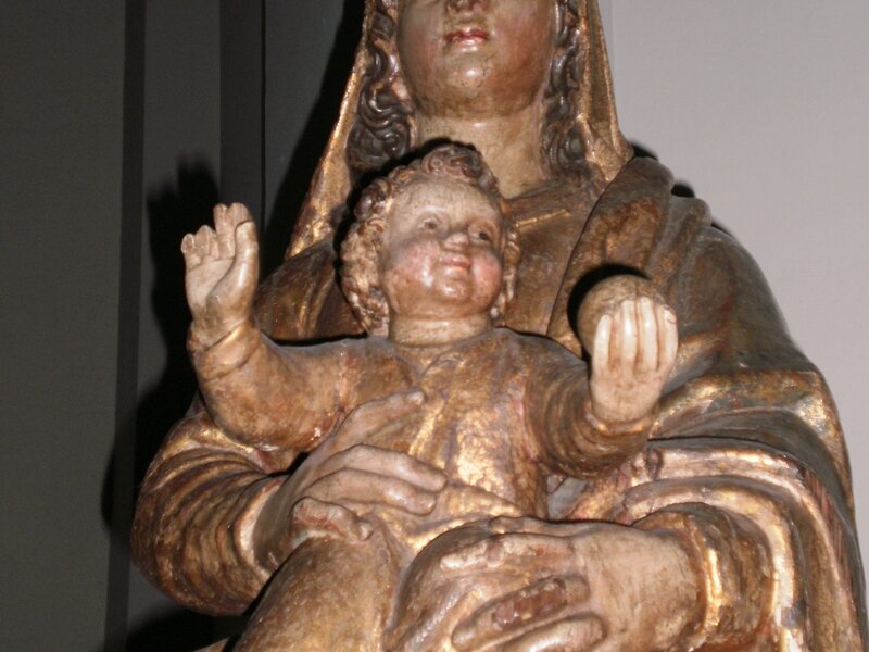 - Uns quadres amb l’apostolat de Cristobal García Salmerón acompanyen una esplèndida crucifixió de Francesc Ribalta, així com uns mobles moderns adaptats a les necessitats actuals de la comunitat cistercenca. Són notables també les dues esplèndides talles bessones de sant Benet i sant Bernat, destinades inicialment a les seves respectives capelles de l’absis de l’església, que han trobat lloc en dues de les vuit fornícules buides de la sagristia. Hem d’esmentar igualment la noble talla de fusta de la Mare de Déu amb l’Infant (s. XVII).