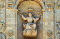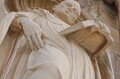 - Más tarde, en tiempos del abad Baltasar Fontanilles (1720-1724), y quizás en colaboración con su antecesor, el abad Baltasar Sayol, se añadieron los paramentos de los dos grandes óculos laterales -las aberturas ya existían- , de un barroco más exuberante, y se modificaron algunos elementos de la fachada central para unificar todo el conjunto.