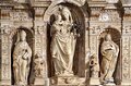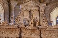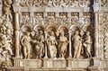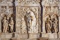 El retablo de Poblet, de alabastro de Sarral y de Ollers, fue contratado por el abad Pedro Caixal y el escultor Damián Forment el 2 de abril de 1527. En 1529, antes del plazo previsto, ya estaba colocado, según consta en la inscripción del bancal.