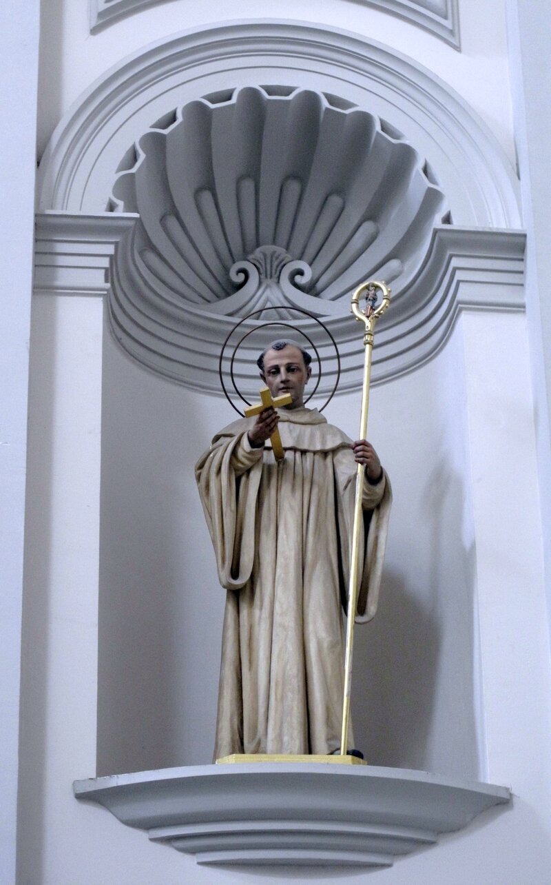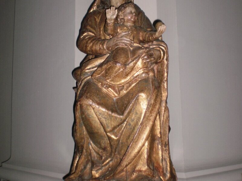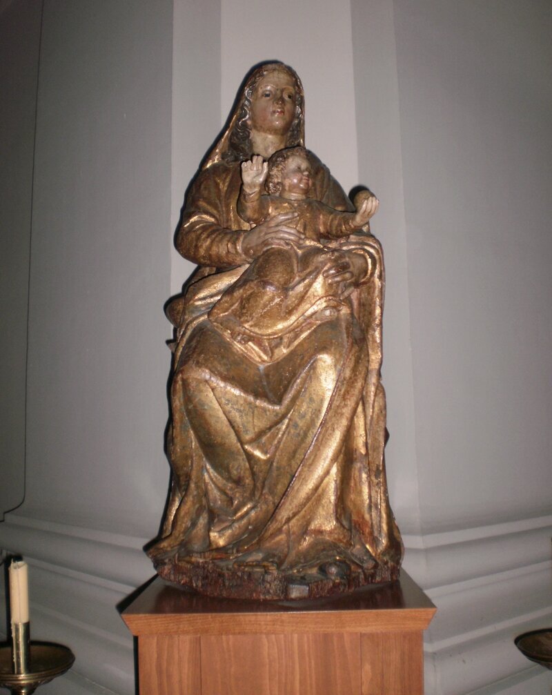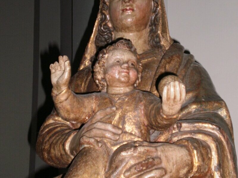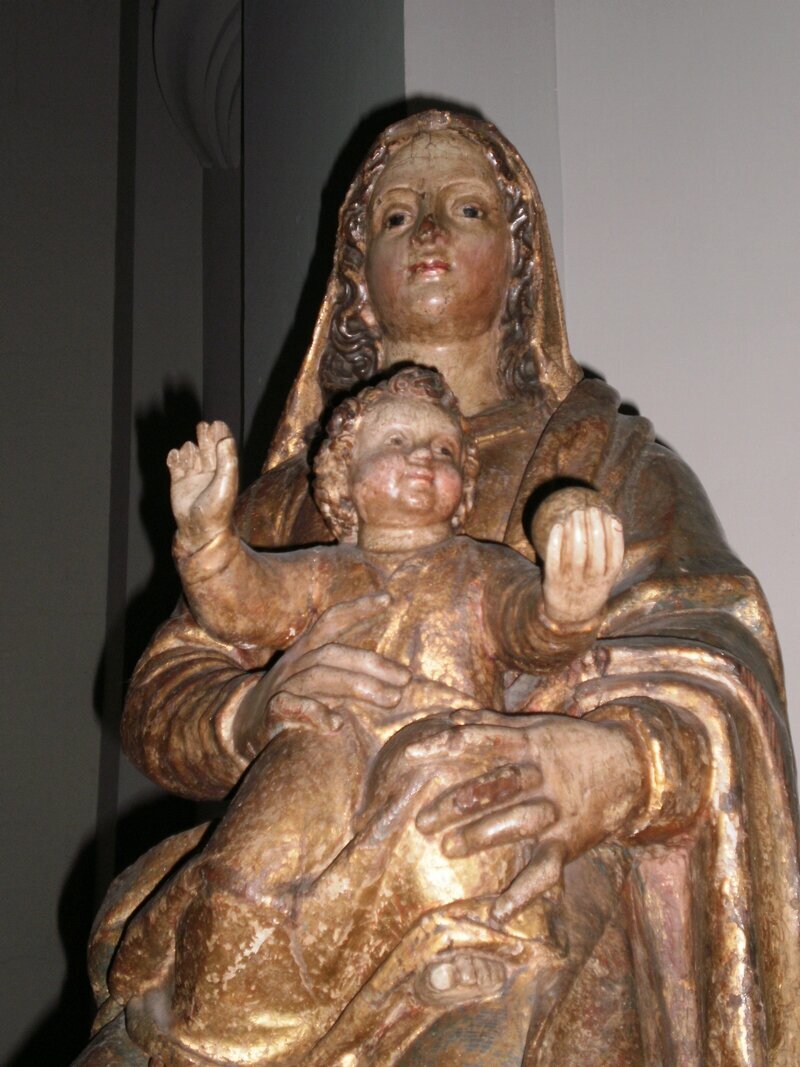 - Son notables también las dos espléndidas tallas de san Benito y san Bernardo, destinadas inicialmente a sus respectivas capillas del ábside de la iglesia, que han encontrado su nuevo emplazamiento en dos de las ocho hornacinas vacías de la sacristía. Cabe mencionar igualmente la noble talla de madera de la Virgen con el Niño (s. XVII).