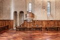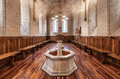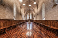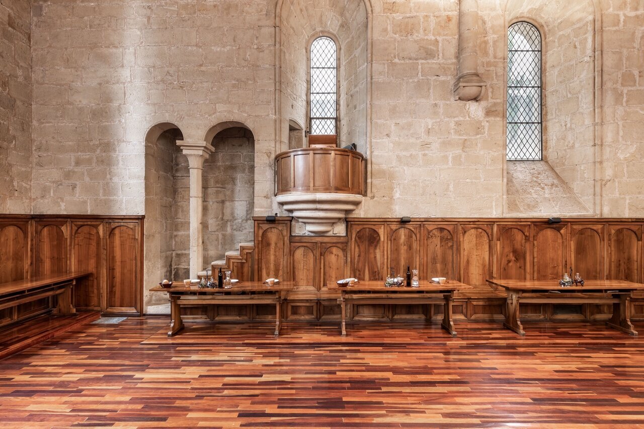 - Cette salle solennelle, le réfectoire du XIIème siècle, n’a été conçue que pour cela: il s’agit d’une pièce très unitaire, avec une imposte légèrement pointue et une voûte en amande, ou les arcs sont appuyés sur des colonnes et des corbeaux accolés aux mûrs. Douze élégantes fenêtres laissent entrer la lumière, dont la beauté change selon les heures de la journée. Par sa forme, le réfectoire rappelle l’église, lieu du repas eucharistique.