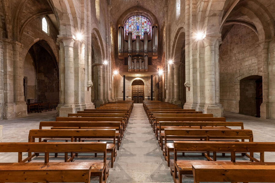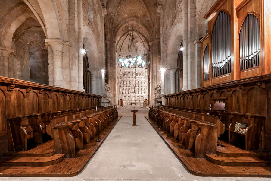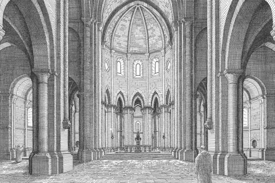 - Nous pouvons encore remarquer dans notre temple la luminosité, splendide pendant les heures centrales de la journée, l’abside majestueuse avec ses sept chapelles absidiales et, surtout, la sobriété de la décoration qui est, en fait, presque inexistante, ce qui « produit le tremblement d’un contact avec la sérénité de l’ineffable, la communion avec le royaume de la paix » selon les mots du P. Agustí Altisent.