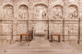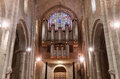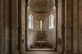 Poblet a été fondé en 1150 et l’église abbatiale était probablement déjà achevée à la fin du XIIème siècle. Au XIIIème siècle, un atrium est construit devant la belle porte romane au tympan impressionnant, et au XIVème siècle de nouvelles chapelles latérales sont ouvertes dans la nef sud, dont la voûte est totalement reconstruite.