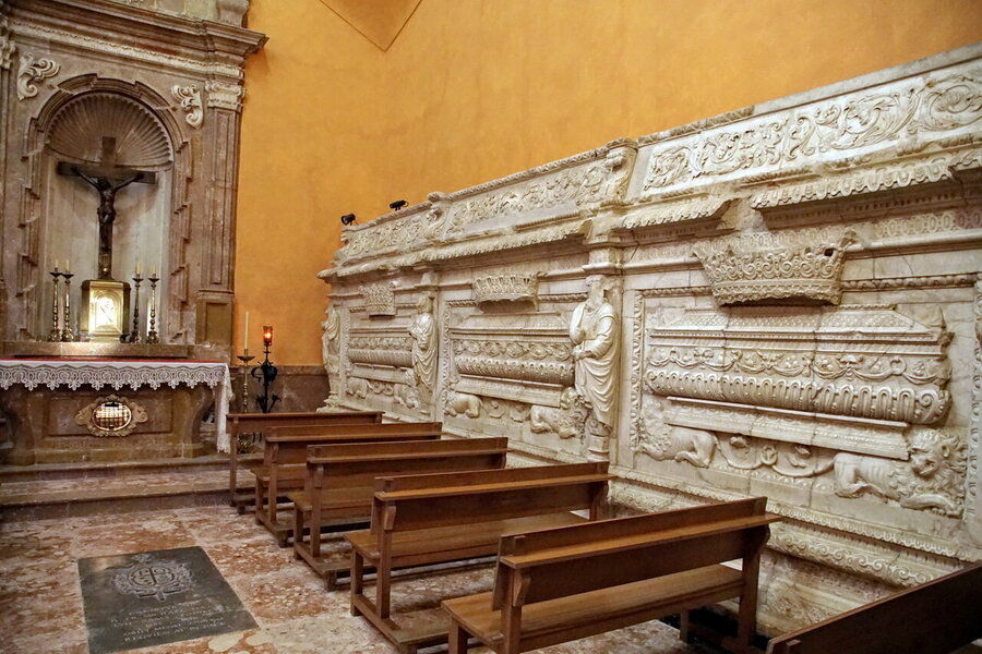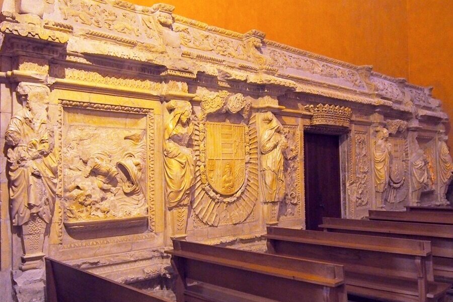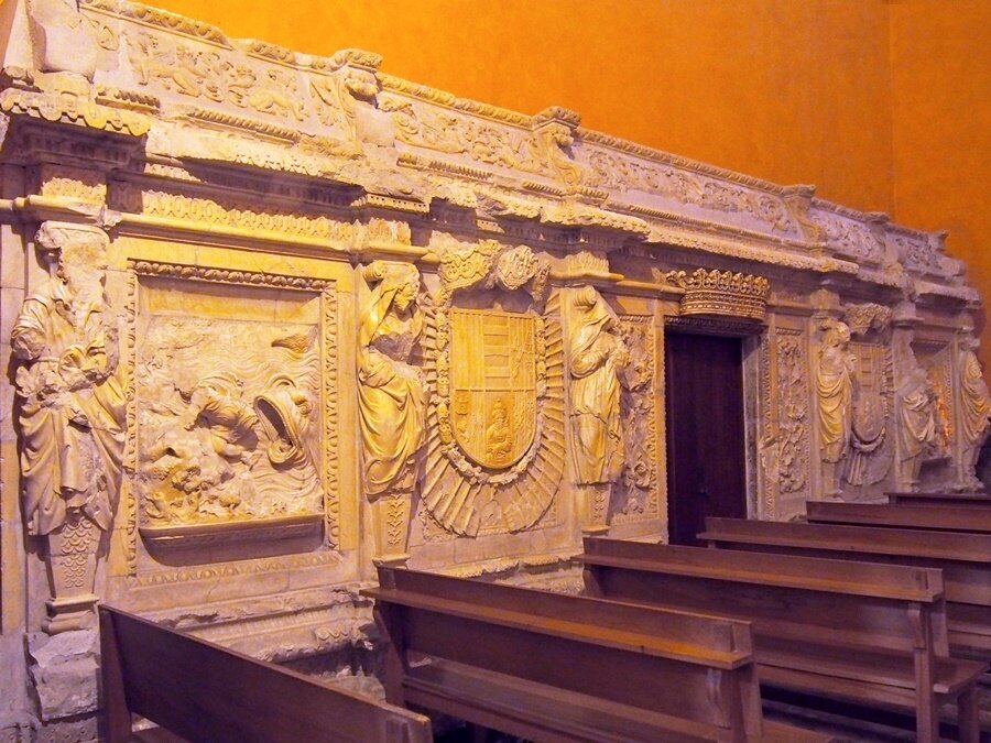 - On y trouve installé une partie du retable que l’Abbé Félix Genover (1728-1732) avait fait construire pour la réserve du Saint Sacrement au déambulatoire de la nef centrale, derrière le retable, aussi bien que des panneaux en albâtre qui se trouvaient sous les tombeaux royaux et que Louis Ramon Folch de Cardona avait fait construire en 1659 pour y déposer les restes de ses ancêtres.