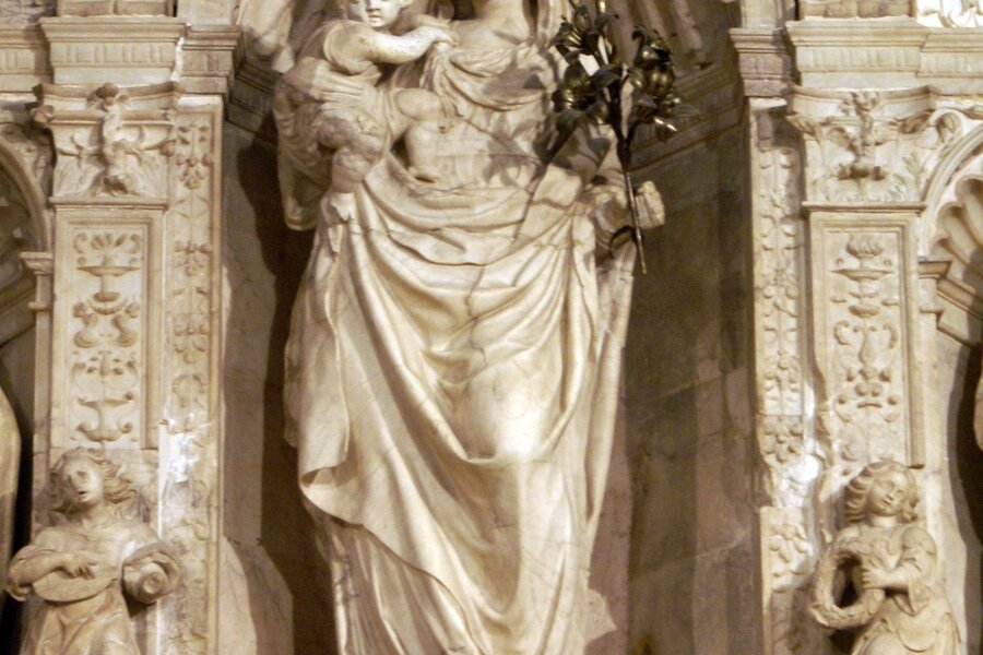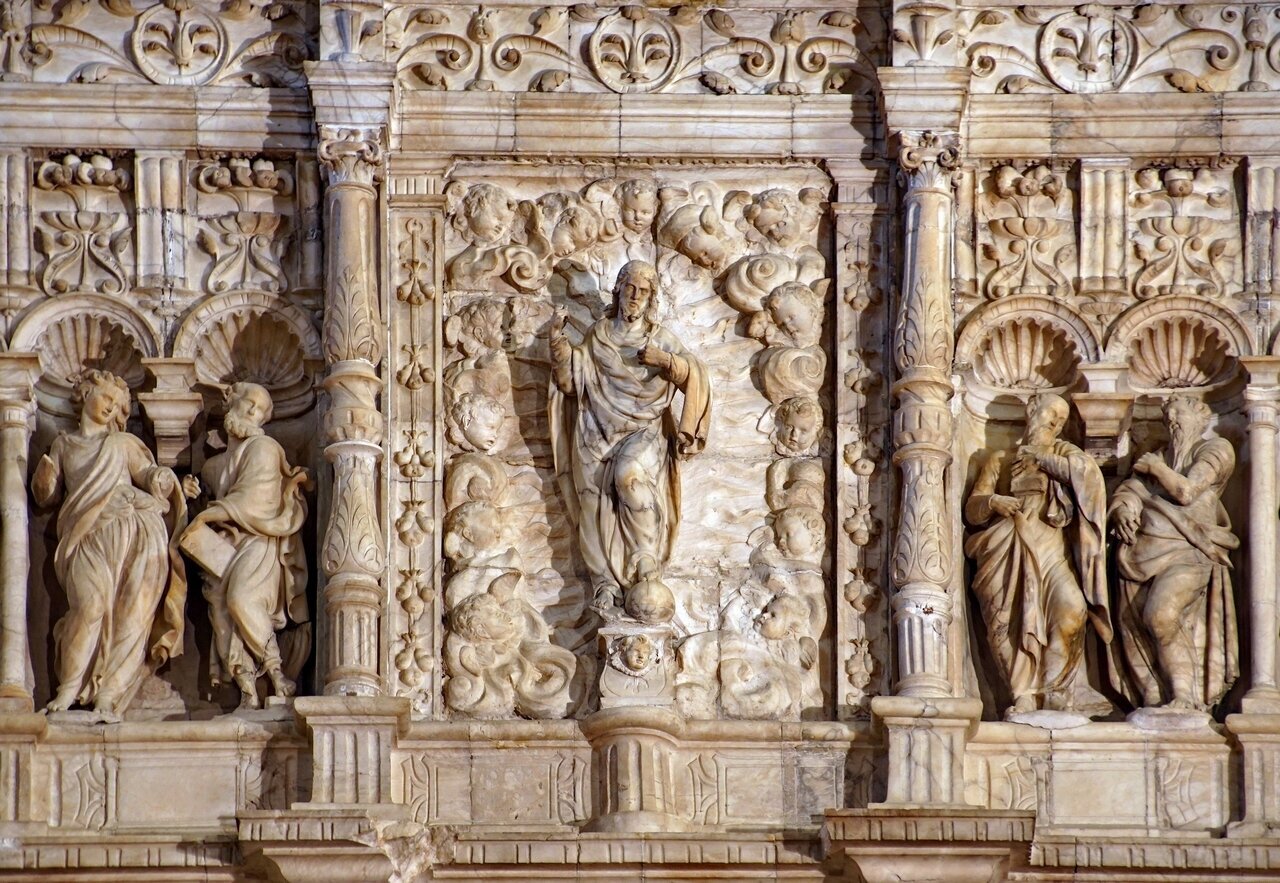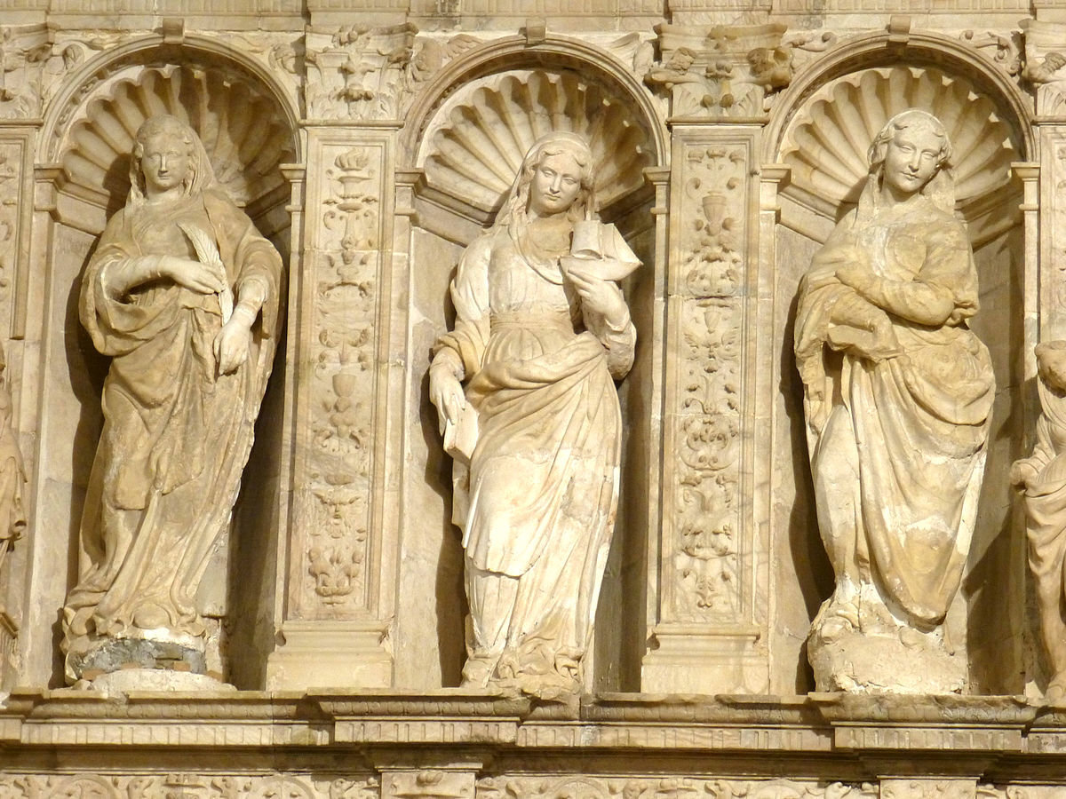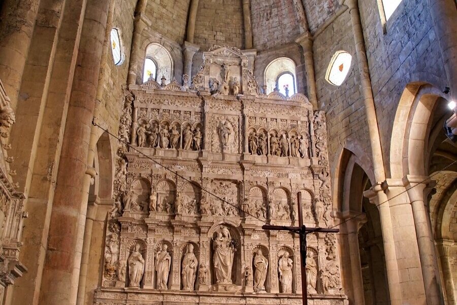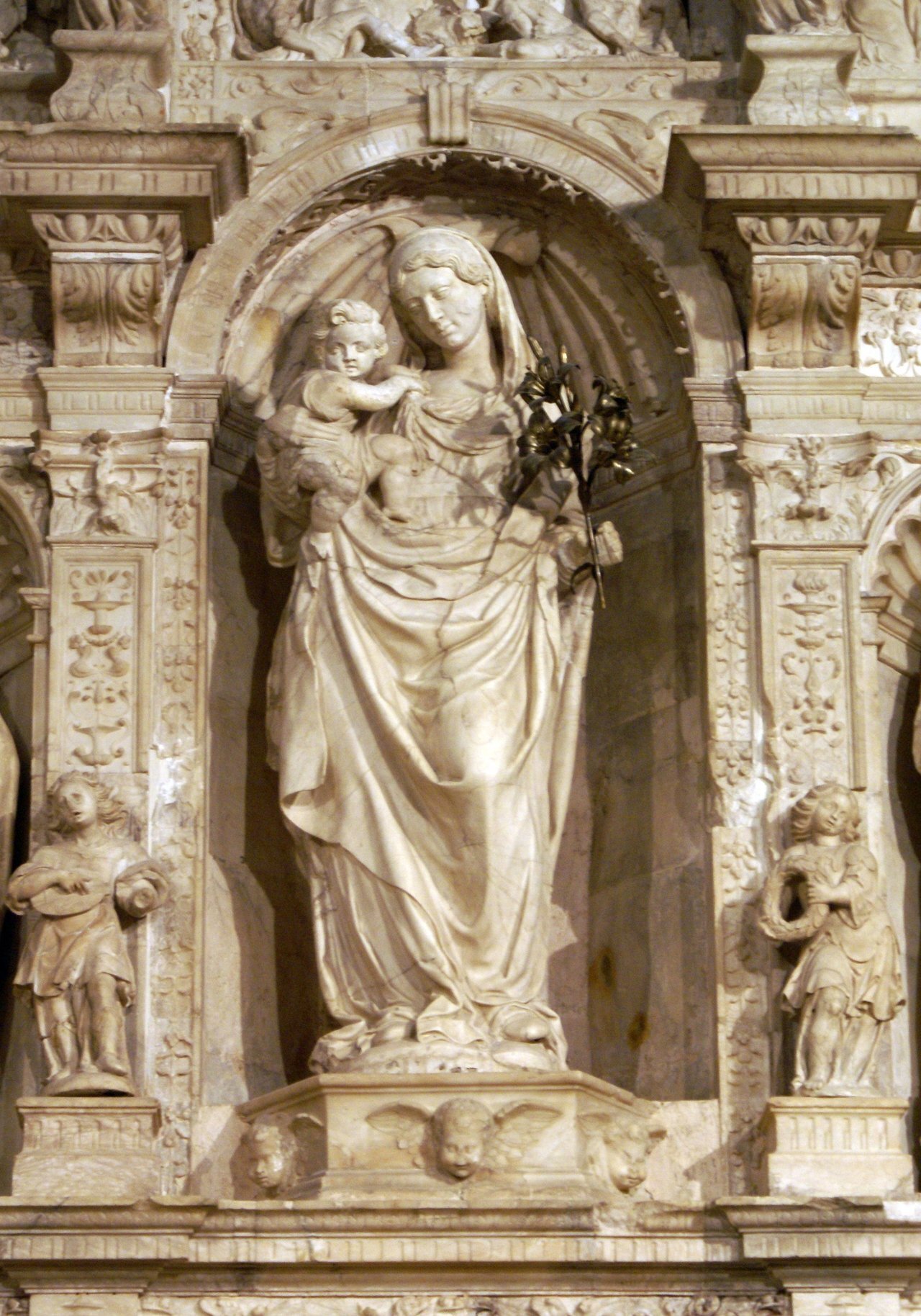- Cet ouvrage a signifié l’introduction du style artistique de la renaissance en Catalogne. Il est dédié à la Vierge Marie, qui occupe la niche centrale, entourée d’un groupe de trois saints, à gauche (Guillaume, Bernard et Malachie) et de trois saintes, à droite (Colombine, Ursule et Florentine). À la base du retable, quoi que très abîmées, on y retrouve cinq scènes de la Passion du Seigneur (la prière à Gethsémani, l’arrestation de Jésus, Jésus fouetté et ligoté à la colonne, l’Ecce Homo et le Chemin du Calvaire). Plus en haut, des scènes évangéliques qui ont un rapport avec la vie de la sainte Vierge (l’Annonciation, la Naissance de Jésus, l’Adoration des Mages, la Résurrection de Jésus, l’Ascension, la Pentecôte et la Dormition de la Vierge). A l’étage supérieur, les apôtres entourent l’image du Christ Sauveur qui nous bénit. Au sommet, le Calvaire couronne le tout.